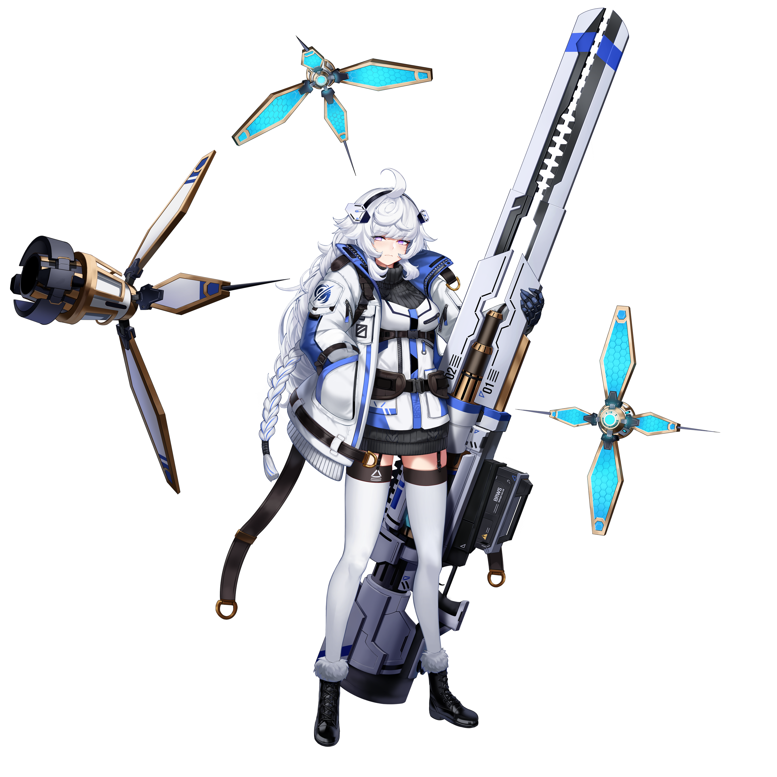核融合エネルギーを利用したプラズマ小銃とドローン3機を利用し、近距離からはビーム拡散で敵を迎撃し、遠距離からの脅威に対しては遮蔽物をすべて貫通し確実に敵を仕留めます。敵の掩蔽が完璧すぎて直接の狙撃が困難な場合は、撃ち放ったビームをドローンを利用して屈折させ、敵の胴体を確実に貫通させます。彼女はとても長い間一人で過ごしてきたためか、誰かのそばにいないと不安を隠せません。一人きりになった時の彼女はただのか弱い少女と言っても過言ではないでしょう。