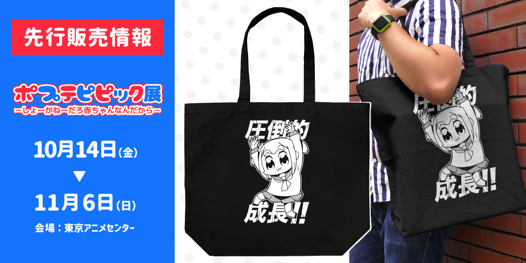 『ポプテピピック』より、意識の高さでは誰にも負けない「圧倒的成長 ラージトート」がCOSPA(コスパ)より登場。イベントやお買い物で活躍する大型サイズのトートバッグです。