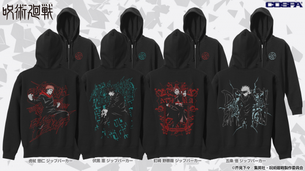 『呪術廻戦』より、「虎杖 悠仁」「伏黒 恵」「釘崎 野薔薇」「五条悟」のフルカラーパスケースやイヤホンポーチ、ジップパーカー、ラージトートなど、新商品25種がCOSPA(コスパ)より登場。