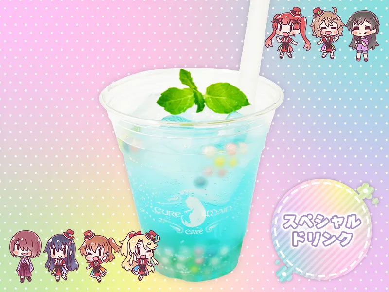 コラボカフェでは、みやこをはじめ、いつも仲良しの花、ひなた、乃愛、小依、夏音たちをイメージした可愛いコラボドリンクをご用意。さらに、劇場鑑賞券を提示すると注文可能なスペシャルドリンク「キラキラで、わくわくな、プレシャス・フレンズドリンク」もラインナップいたしました。