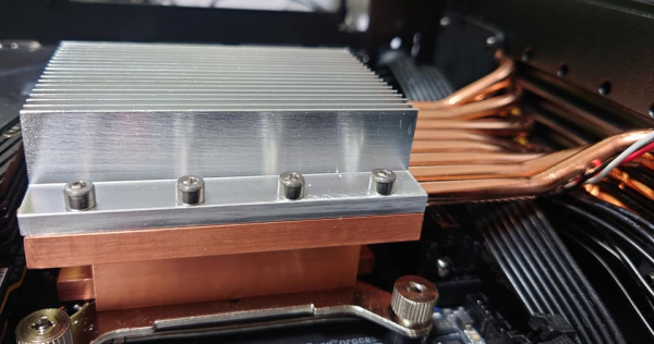 ○ 新高性能CPUを採用し、大幅にサイズアップした銅インゴットから削り出した1.1Kgのヒートシンクコアと表面積を拡大したフィンを搭載し、CPUの熱を効率よくコア、フィン、銅パイプ、筐体へと熱伝導させて冷却性能を高めました。またCPUの高負荷時のみ低回転で動作する静音FANとのハイブリッド冷却システムを採用しました。