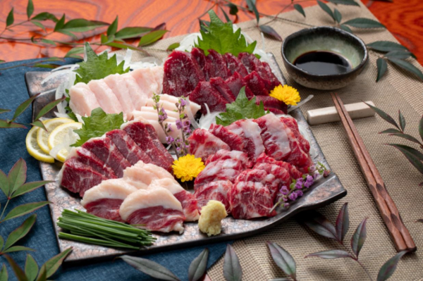 馬刺し専用のタレもセットに含まれておりますので、解凍後すぐにお召し上がりいただけます。