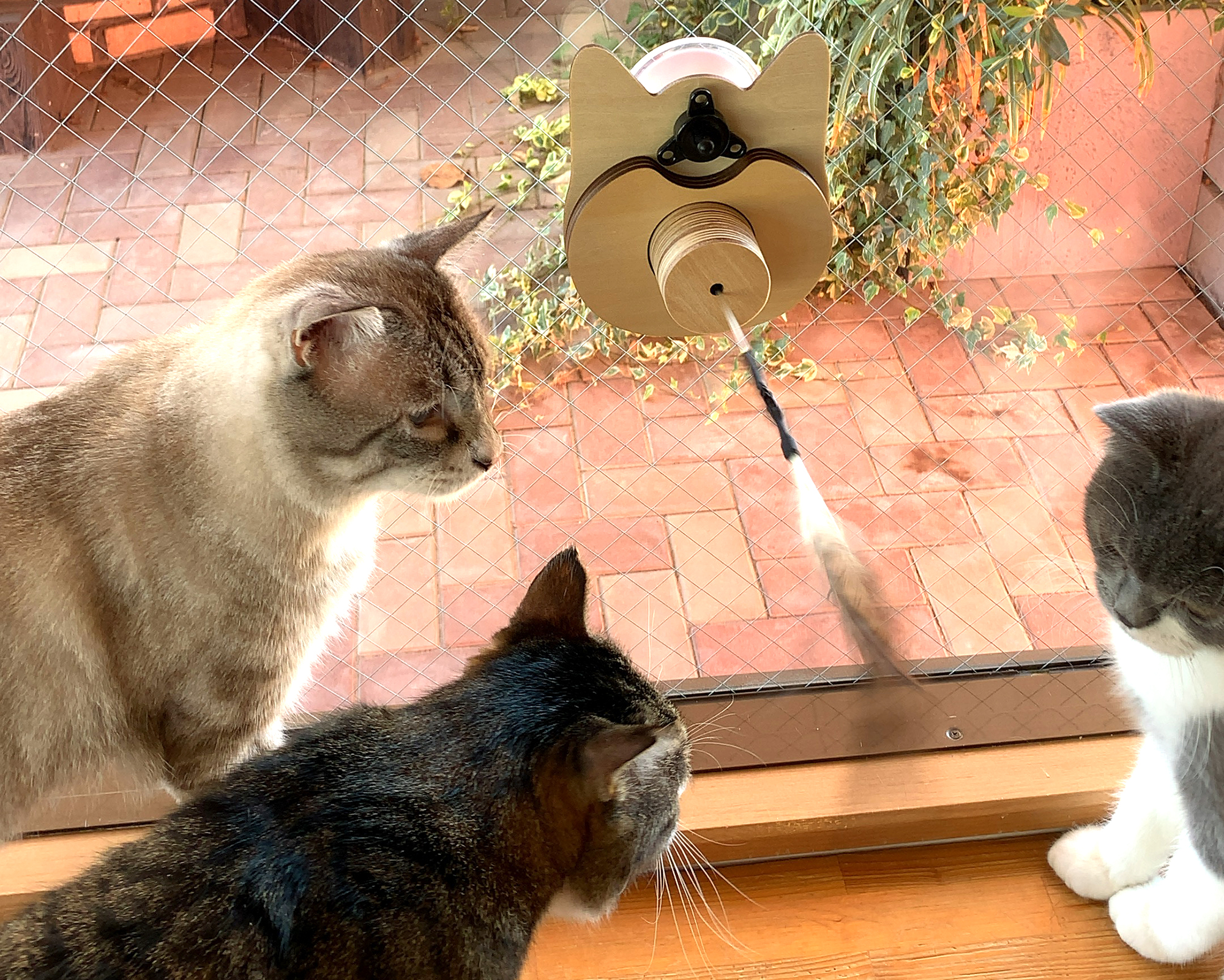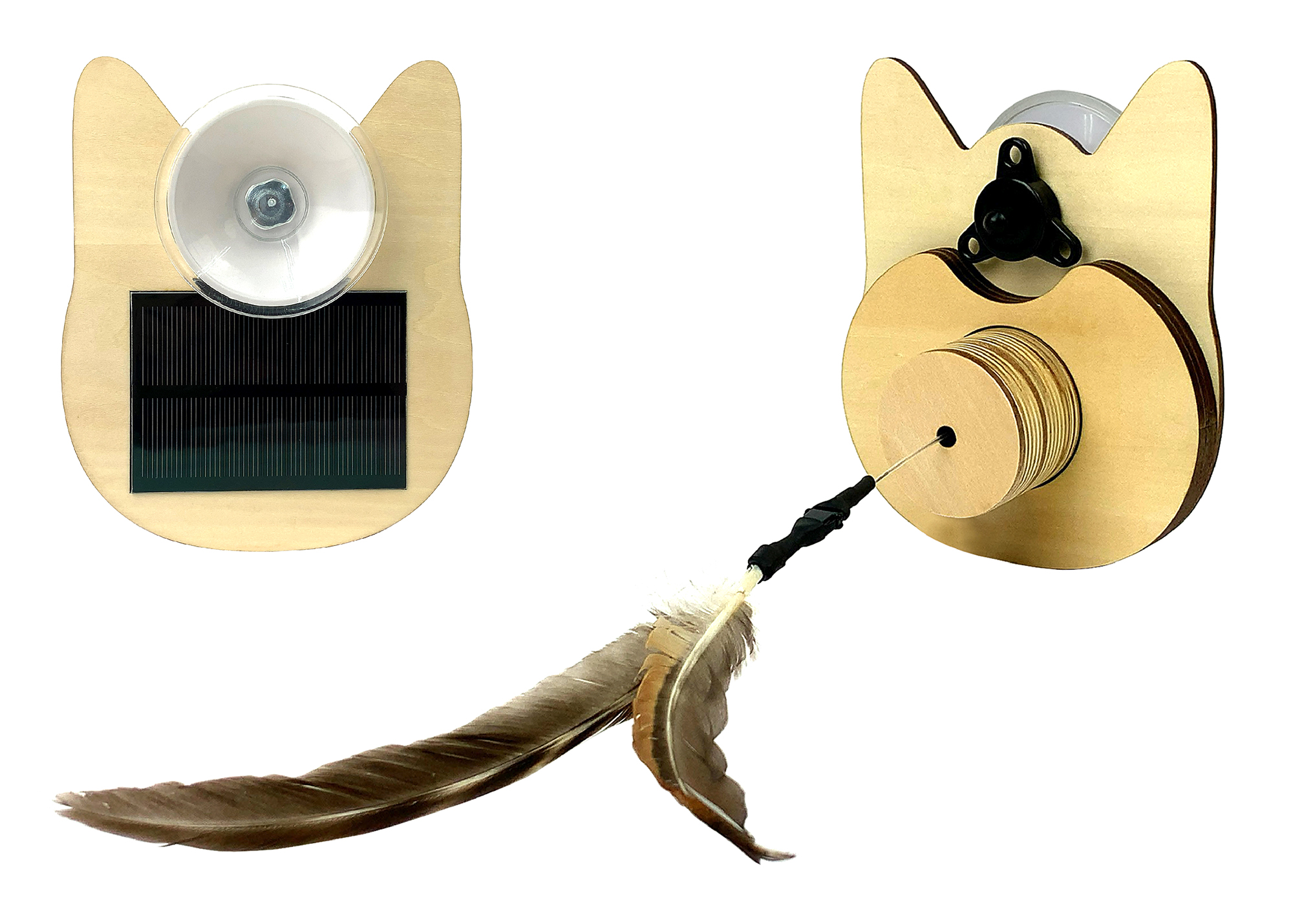 ばね屋がその技術を活かして猫のおもちゃを作りました。窓辺が好きな猫の退屈な時間を豊かにしたいという想いから生まれました。電池もコードも不要でランニングコストを節約し、ソーラーでエシカルに遊べます。超弾性ワイヤーを採用し俊敏な動きに猫が大興奮!おもちゃも交換可能で変化をつけて遊べ、天然木のシンプルなデザインで部屋に馴染みます。