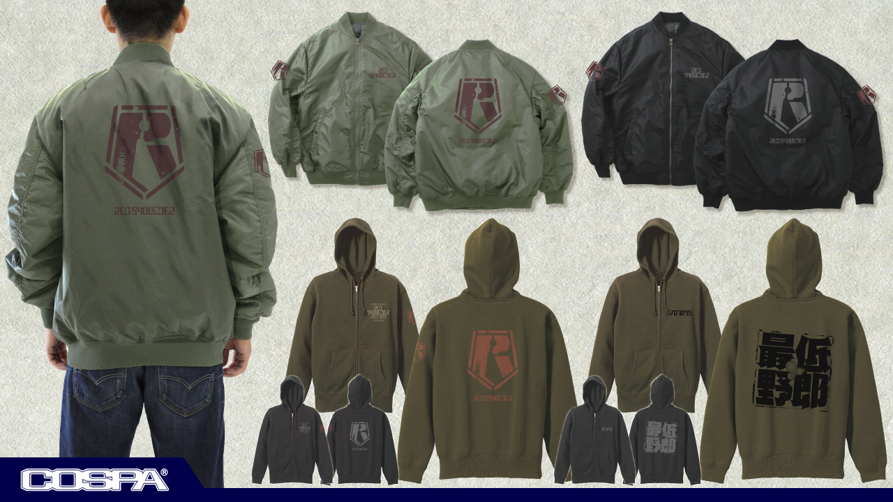 「レッドショルダー」部隊のエンブレムが刻まれたMA-1ジャケットとジップパーカー、ボトムズ乗りのあなたやボトムズフリークのあなたの為の「最低野郎」ジップパーカーがCOSPA(コスパ)より登場。