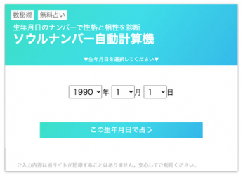 利用者は、生年月日を選択することで簡単に無料で占うことができ、本来算出が面倒なソウルナンバーを自動計算。それによって導き出された性格や特徴、運気を上げるためのワンポイントアイドバイスを受けることができます。