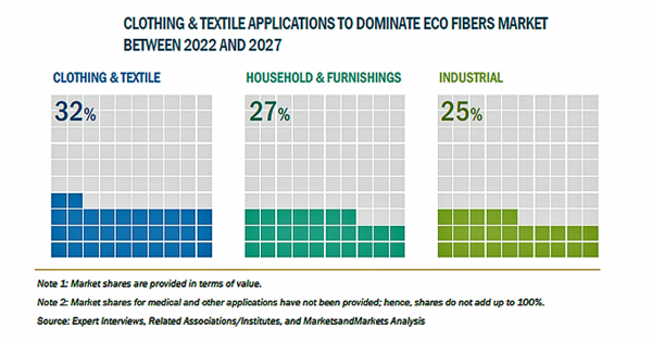 エコ繊維の市場規模は、2022年の520億米ドルからCAGR8.5%で成長し、2027年には783億米ドルに達すると予測されています。持続可能性をサポートする環境に優しい製品に対する需要の高まりは、今後のエコ繊維市場の成長を促進すると予測されています。エコ繊維は、高い湿潤強度、優れた吸水性、柔らかさ、光沢、染めやすさ、生分解性などの特性を備えており、衣料/布地、家庭用家具、産業用、医療用など、さまざまな用途で需要が高まると考えられます。