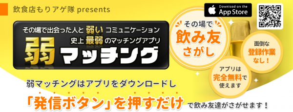 「飲食店もりアゲ隊」を運営する有限会社テリンクスドットコム(本社:山口県宇部市、代表取締役:三浦のぼる、以下弊社)は、iPhone アプリ「弱マッチング」を2022年11月11日に正式リリースしました。