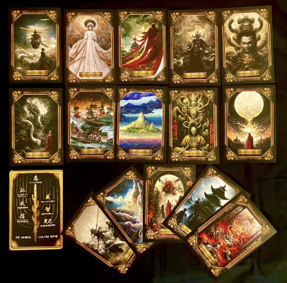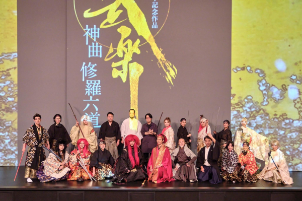 注目は、AIが作成したユニークな世界観のベースに源氏、増山氏が加筆した、機械と人間の合作絵画の展示。国際的な演目が多い、源氏末裔の「サムライ芸術家」源氏が、本年11月5日にIHIステージアラウンド東京で上演され注目された、ダンテを能で演じた武楽座「神曲 修羅六道」(イタリア大使館、TBS後援、文化庁芸術祭参加作品)のAIコラボ関連作品群だ。