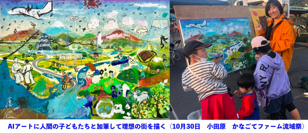今回の作品はリアル会場と併設した、メタバース上のギャラリーでも展示される。増山氏は人工知能アートをベースに、子どもたちと理想のまちづくりをイメージして描いた作品「小田原の未来」を展示する。