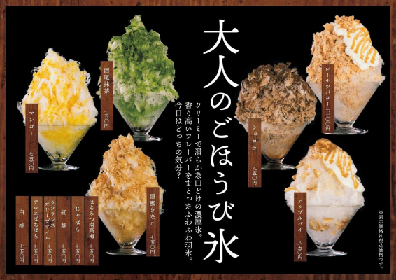 わざわざ足を運んで食べにきてもらえる行列ができるかき氷屋さんを目指しています。「おかわりがしたくなるかき氷」をコンセプトに、ふっわふっわのかき氷を常時12~16種類提供しています。一番人気は「黒蜜きなこ/750円(税込)」です。