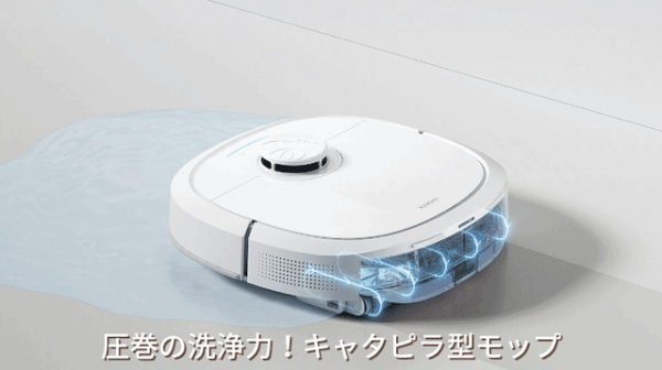 本体の浄水タンクと汚水タンクが完全分離式なので、水拭きしながらリアルタイムでモップを洗浄します。汚れた水は汚水タンクに自動回収されるので、常にきれいな水で床を掃除します。