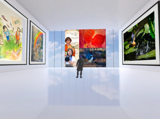 関連図書を刊行する出版社のクラブハウス(渋谷)が協賛し、話題のメタバーズSpatialでも同時開催され世界中から参加することが可能。テーマは「愛~いきとしいけるもの」。動物と人間が共存できる優しい世界を動物写真と絵画で表現する。