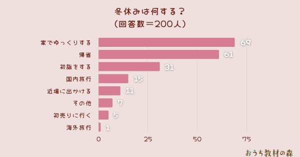 「冬休みは何する?」とアンケート調査した結果、1位は『家でゆっくりする』でした。