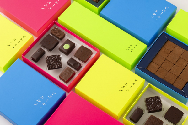 ネオンカラーが目を惹く限定のボックスに、チョコレートやトリュフ、人気のマカロンなど、バレンタインギフトにおすすめのアイテムを詰め合わせました。