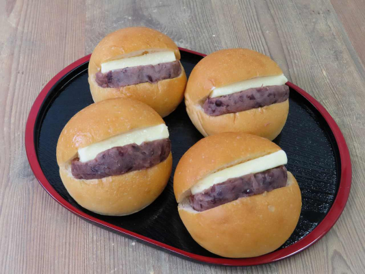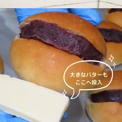 あんバターはふわふわ生地に甘さ控えめの粒あんと少し塩味のきいたバターをたっぷり挟んでいます。