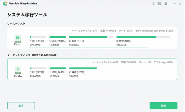 パソコンのデータを新しいパソコンに移行したい場合、専用ツールPassFab 4EasyPartitionを使う方法をお勧めします。PassFab 4EasyPartitionは最も安全でプロフェッショナルなシステム移行ツールで、10分間で迅速かつ安全に全てを新しいWindows に移行できます。そして、同ソフトはWindows 11、10、8.1、8、7に対応できます。以下がこのツールを使った作業方法です。