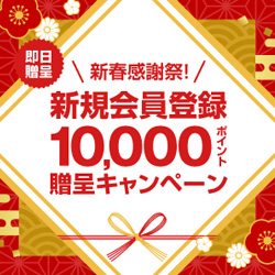 以前、大好評を博した「新規会員登録5,000ポイント贈呈キャンペーン」の、2倍の”10,000ポイント”の即日贈呈となります!(1ポイント=1円換算)