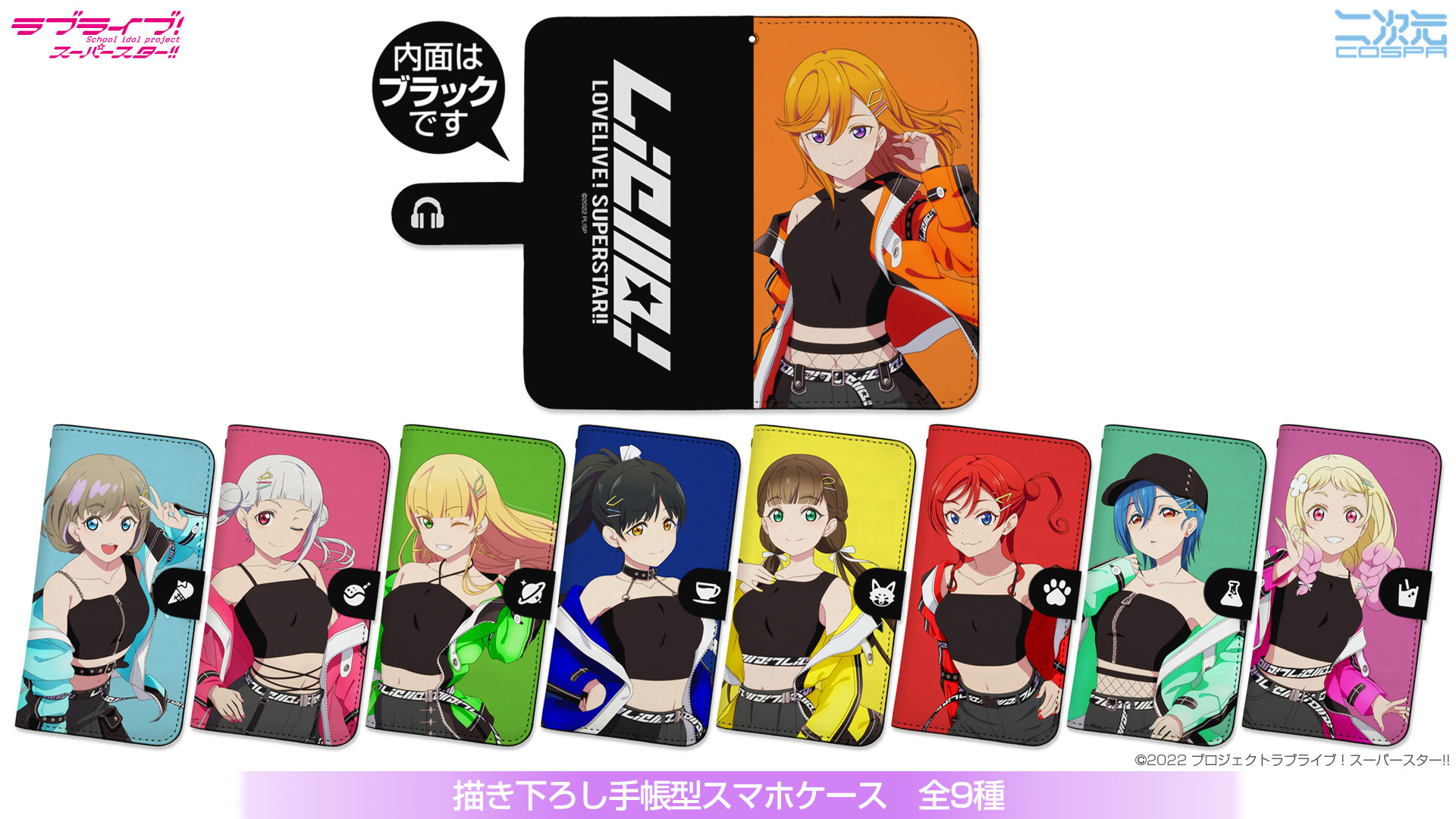 描き下ろしイラストを使用。『近未来』をイメージした衣装を身にまとった『Liella!』メンバーたちのグッズ第2弾が二次元コスパよりラインナップいたしました。