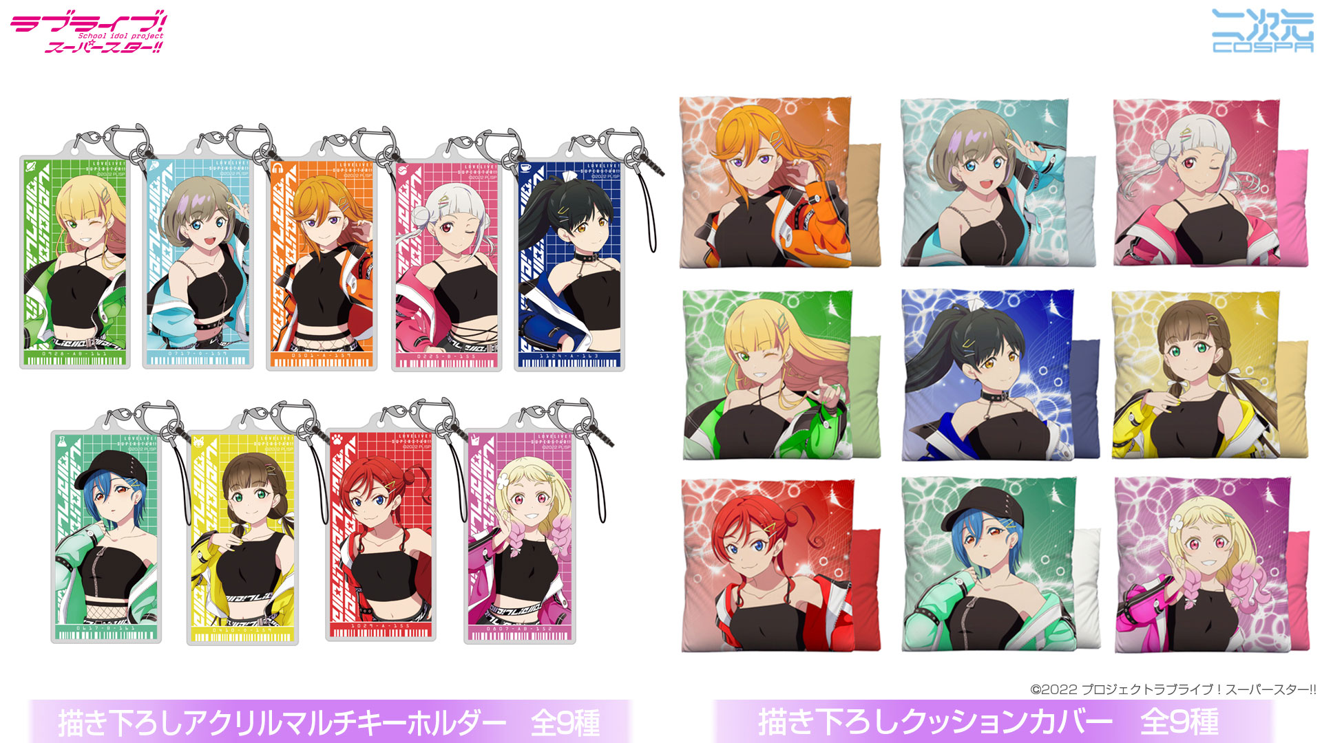 公式キャラクターコスチュームやアパレル、グッズの企画、開発、製造を行う株式会社コスパは、『ラブライブ!スーパースター!!』より新グッズ54種を発表した。