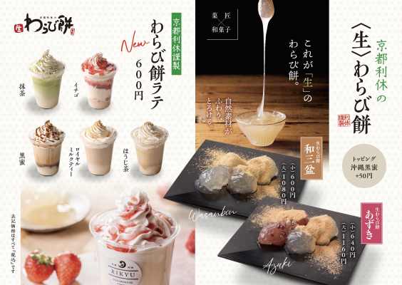 「京都利休の生わらび餅」は日本の伝統的な和菓子である「わらび餅」を使ったデザートを提供するスイーツ店です。伝統的な「わらび餅」に加え、独特の食感を活かした「飲むわらび餅」が人気を集めるなど、伝統に新しい感覚を加えた品ぞろえでお客様からご好評をいただいています。