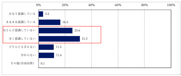 「ほとんど意識していない」との回答が25.6%、「全く意識していない」との回答が31.2%、