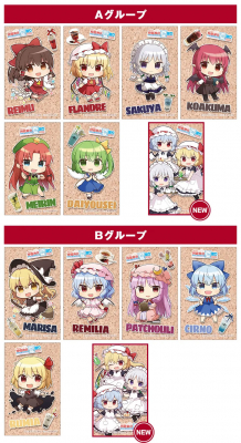 キュアメイドカフェ店内や同フロア、ジーストア・アキバにて『東方Project』関連商品を1,500円(税込)ご購入・ご予約ごとに、カフェで配布しているコラボ限定キャラクターカード(全13種)をAグループかBグループ、お好きな方から1枚ランダムで1枚お渡しします。