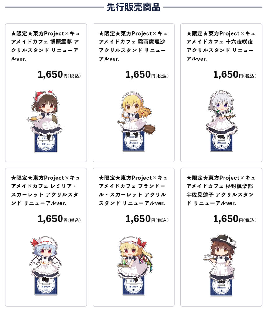 また、CURE MAID CAFEの制服姿のレミリアやフランドールたちのグッズも新たに追加となります。