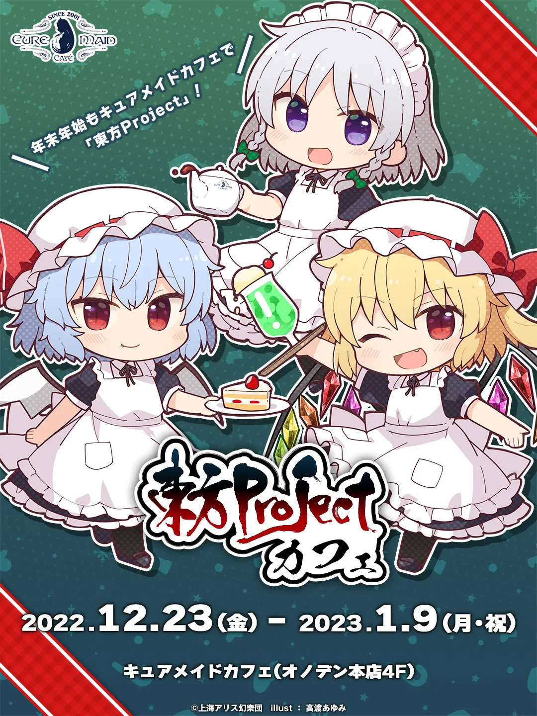 8月に開催した『東方Project×キュアメイドカフェ 博麗神社~夏祭り2022』カフェがリバイバル開催決定。12月23日(金)より『東方Project』を開催いたします。