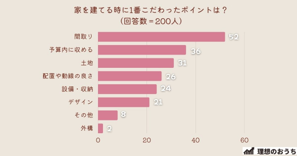 「家を建てる時に1番こだわったポイントは?」とアンケート調査した結果、1位は『間取り』でした。