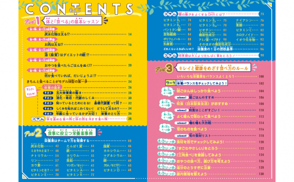 オールカラーでかわいいイラストや写真が満載! 楽しみながら、栄養の基本と健康的な食べ方について学べる一冊です。