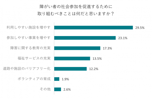 【質問】障がい者の社会参加を促進するために取り組むべきことは何だと思いますか?