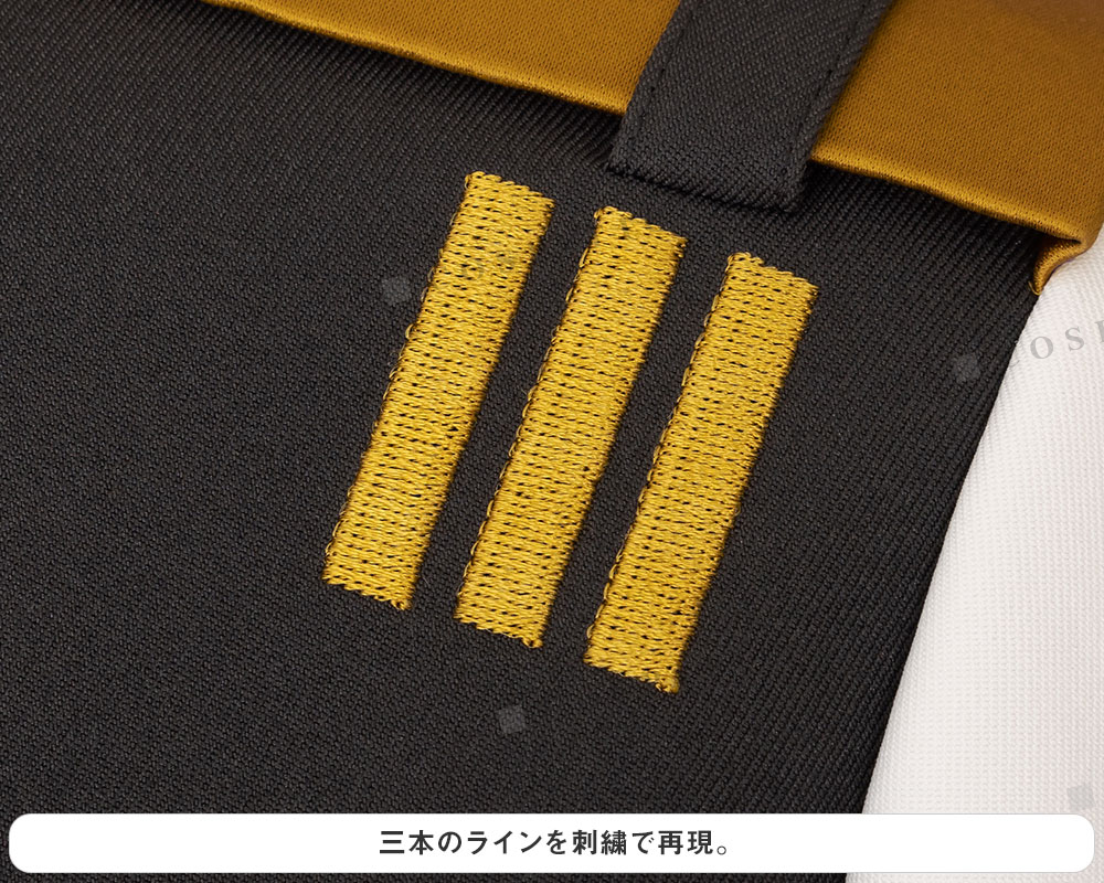 胸元のエンブレムや<ホルダーVer.>の衿元を飾る模様は全て刺繍で表現。