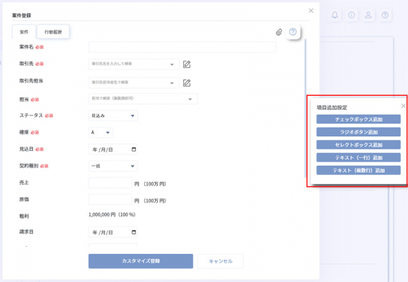 ・案件登録のカスタマイズ設定機能追加