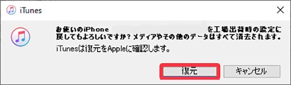 Step3:確認画面が表示されますので、「復元」をクリックします。