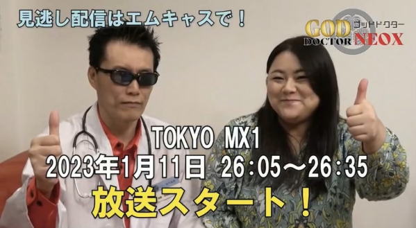 株式会社ゴッドワールドエンターテインメントが製作する連続ドラマ「GODドクターNEOX」(全12話)がTOKYO MX(TOKYO MX1)2023年1月11日26:05(1月12日02:05)で放送を開始します。