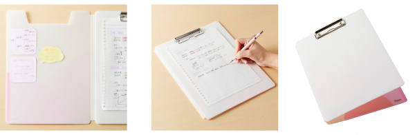本製品は、そうした学習方法に対応し、クリップボードに表紙を付けた「クリップファイル」を開発。さらに表紙外側にポケットを付けることで、授業で使うプリントやルーズリーフを一時保管しやすく持ち歩きが便利な機能を加え、かわいらしいパステルカラーで勉強がより楽しくなることを目指しました。