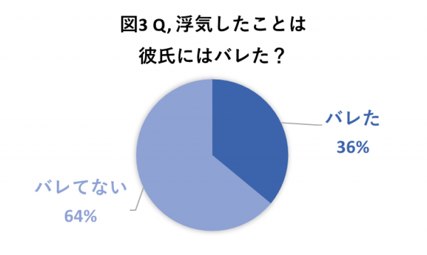 浮気をしたことがある方のうち、彼氏にバレた方は3割強。晴れてバレずに済んだ方は6割程度であることが分かりました。