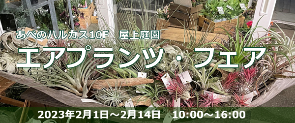 あべのハルカスウイング館10F屋上庭園にて開催しております、花苗展示販売会では2/1より「エアプランツ祭り」「冬苗売り尽くしセール」を開催いたします!