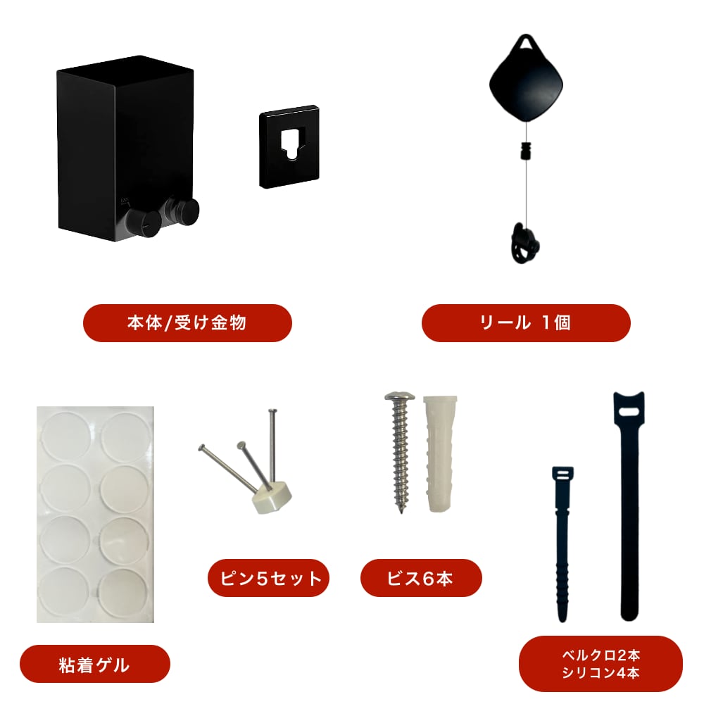 内容物 :本体、ワイヤ受け金物、結束バンド(シリコン、ベルクロ)、その他