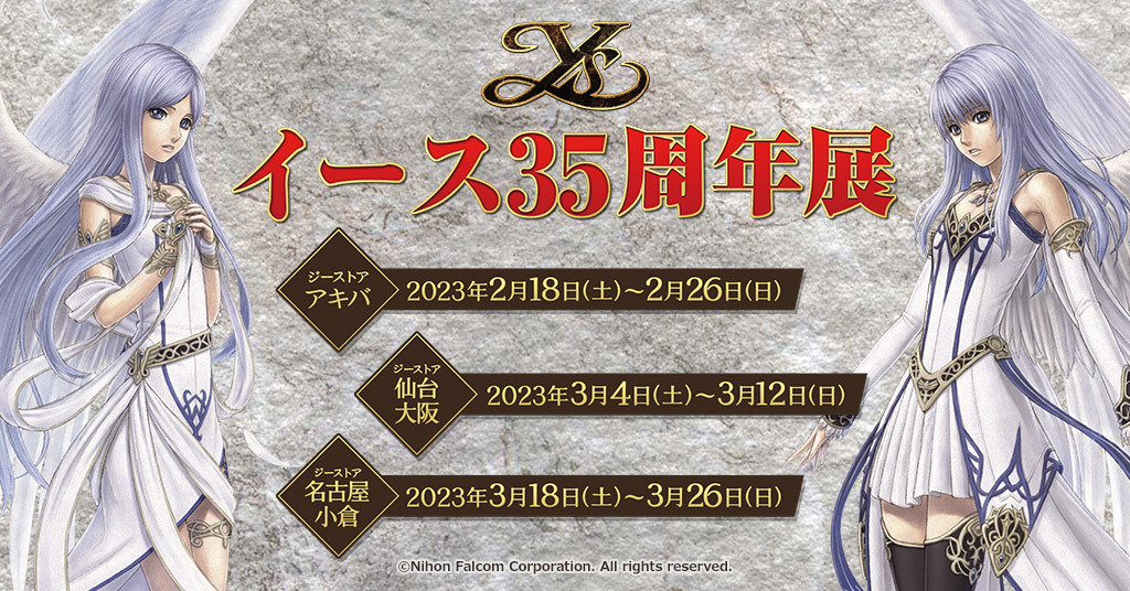 『イース35周年展』は、2月18日(土)~26日(日) ジーストア・アキバでの開催を皮切りに