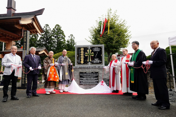 長徳寺は江戸時代隠れキリシタンを匿った歴史があり、芸術家でもあるご住職の渋谷真之さんは「切支丹追悼碑」を自らデザイン・設立。宗派を超えた平和祈りのお寺としてムスリム、キリスト教徒の方々に紹介されるなど、世界から注目されています。