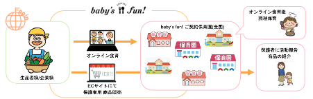 新潟市内の農家と提携し、baby's fun!を利用している全国の保育園の園児向けに、生産者様や企業様と保育園をオンラインでつなぎ、子ども達に食材の成長過程や、商品の製造過程など、題材となる「食べ物」を様々な角度から動画などを使い、食育を行っていきます。