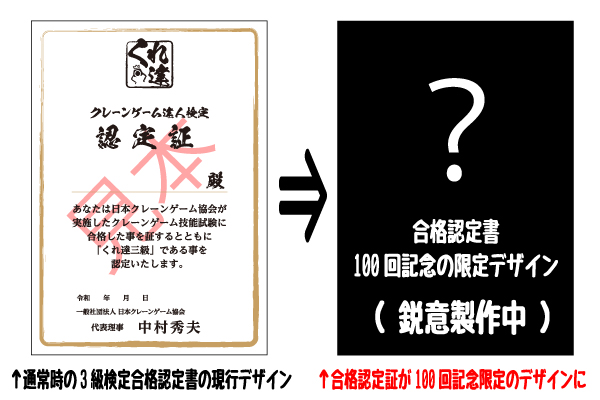 クレーンゲームに関する唯一の資格『クレーンゲームの達人検定(以下、くれ達検定)』を認定、発行する一般社団法人日本クレーンゲーム協会(代表理事 中村秀夫/埼玉県行田市)は、2023年3月11日(土)開催のくれ達検定3級で、2015年3月より始まったくれ達検定も、通算100回目となる3級検定開催を迎えます。