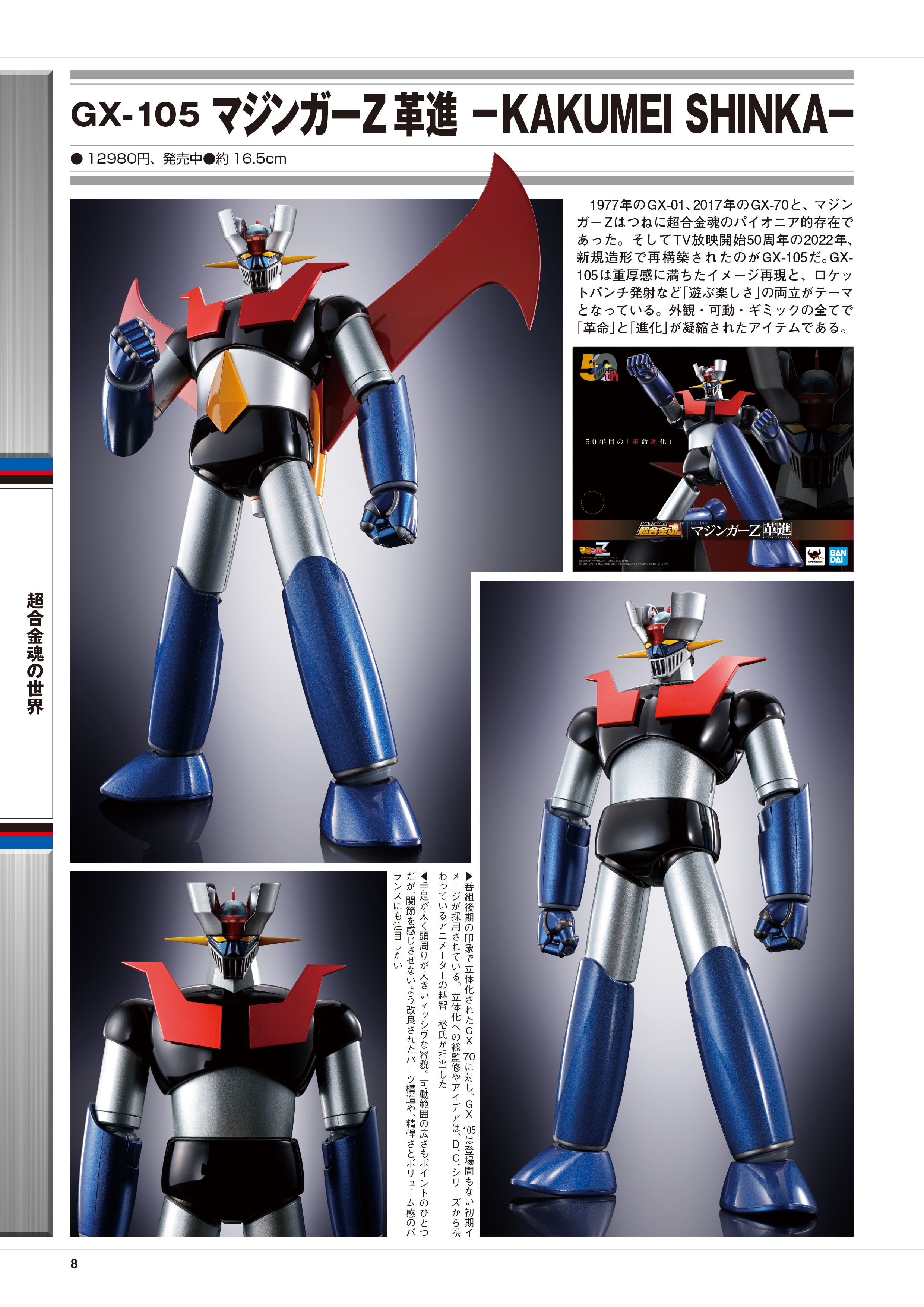 『マジンガーZ』ホビー50年の歴史を写真付きで解説するとともに、アニメーター越智一裕が描くピクチャーストーリー「スーパーロボット軍団 ダイナミック大決戦」も掲載!『マジンガーZ』原作者である永井豪先生と、その主題歌を歌う水木一郎さんのスペシャル対談も収録いたします!