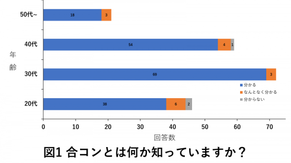 合コンへの認知度については、20代以降は理解している方が過半数を占めていました。