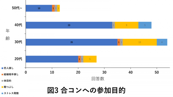 参加の目的に関しては、いずれの世代も「恋人探し」という回答が多い結果となりました。