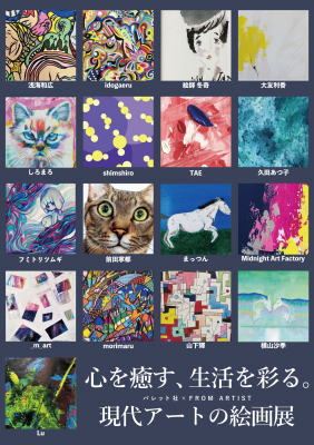 BUSCA合同会社(本社:茨城県水戸市、代表:戸井田 翔馬)と株式会社パレットは、アーティストが自身の作品を販売できるプラットフォーム「FROM ARTIST」にて、「心を癒す、生活を彩る。現代アートの絵画展」を2023年2月27日から3月5日まで共同で開催いたします。本企画展に、アーティスト「絵師冬奇」「浅海和広」「Midnight Art Factory」「_m_art」「idogaeru」「大友利香」「しろまろ」「shimshiro」「TAE」「久田あつ子」「フミトリツムギ」「前田寧都」「まっつん」「morimaru」「山下輝」「Saki yokoyama」「Lu」の参加が2月16日(木)に決定いたしました。