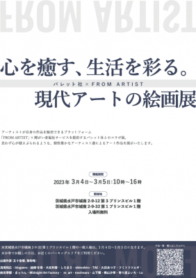 今回茨城県では初めて、「心を癒す、生活を彩る。現代アートの絵画展」と題し、アートのD2Cプラットフォーム「FROM ARTIST」の実店舗コラボ展を実施します。