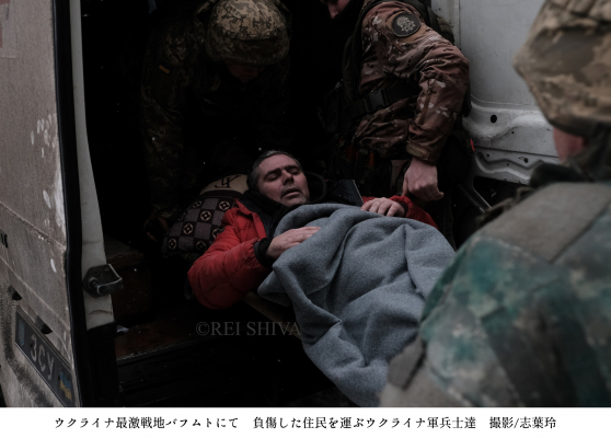 志葉氏は、東部ドンバス地方の要衝で、ウクライナの産業の中心地である最激戦地バフムトでの取材も決行。「取材中にも、住宅地にロシア軍の砲撃が着弾し、住民が負傷するのを目の当たりにした。ガスや電気、水などのインフラも失われ、非常に厳しい状況だった」。(志葉玲)