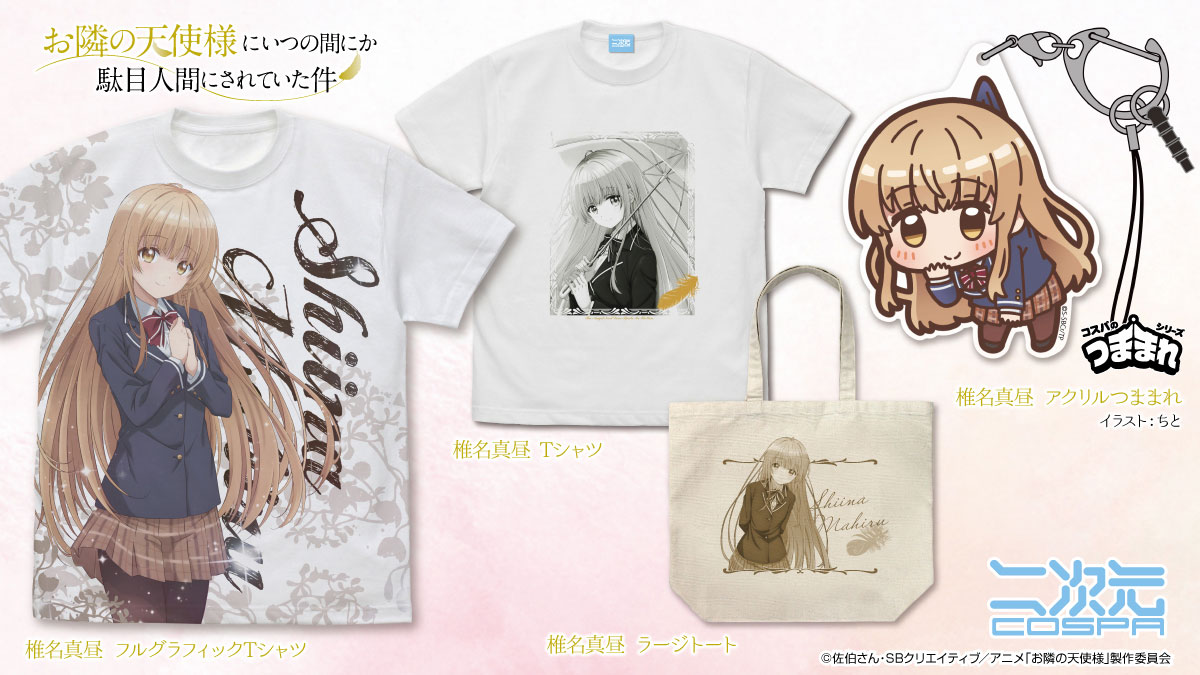 公式キャラクターコスチュームやアパレル、グッズの企画、開発、製造を行う株式会社コスパは、『TVアニメ お隣の天使様にいつの間にか駄目人間にされていた件』より新グッズ4種を発表した。
